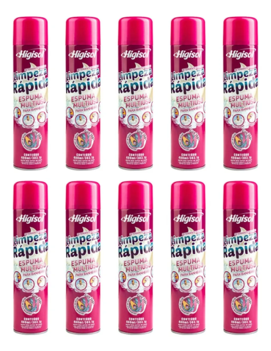 10 Detergente Sanitário Espuma Multiuso Aerosol Limpeza Rápida 400ml Higisol