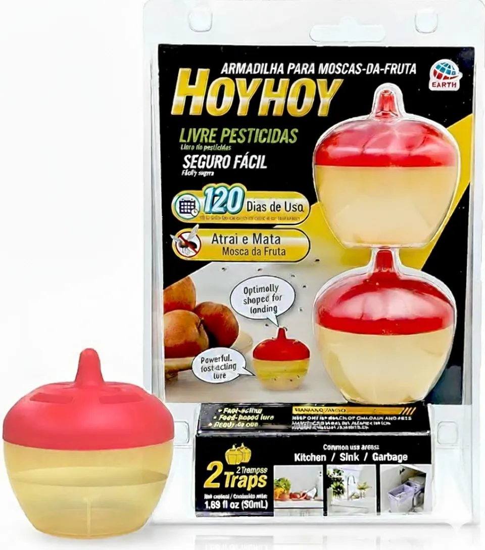 Cada kit inclui duas armadilhas discretas e fáceis de usar, além de um atrativo líquido natural feito com cinco ingredientes de qualidade alimentar.