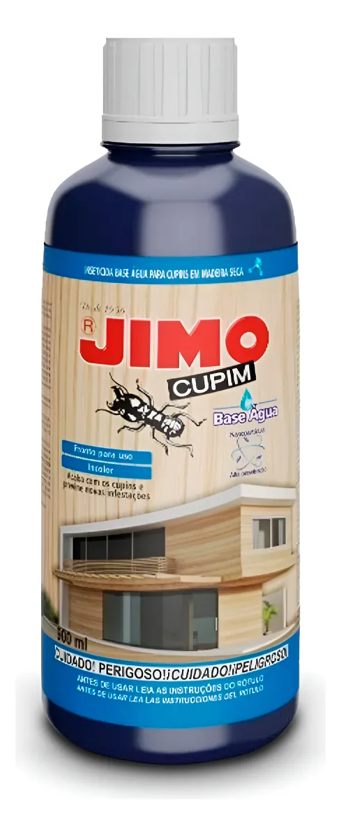 JIMO Cupim Base Água é um inseticida pronto para uso eficaz contra cupins e brocas. Sua fórmula inovadora com tecnologia de nanopartículas foi desenvolvida para penetrar profundamente nos veios da madeira, eliminando a colônia e prevenindo novas infestações. É incolor e não altera a aparência da madeira.