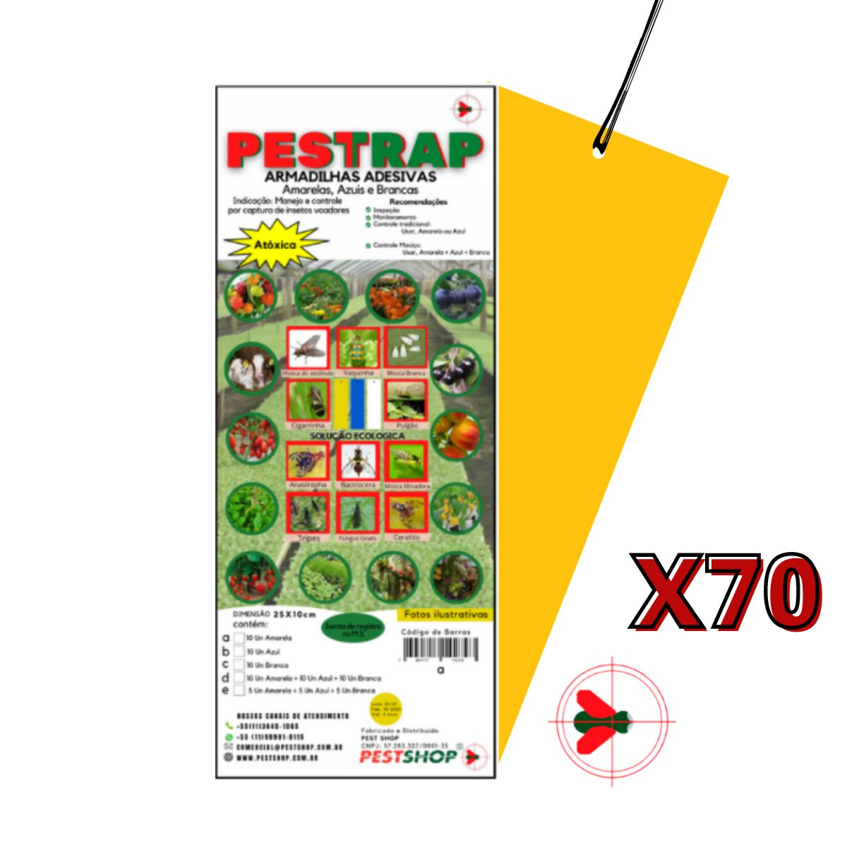Armadilha Adesiva PesTrap Amarela Insetos Alados 25x10 -70Un