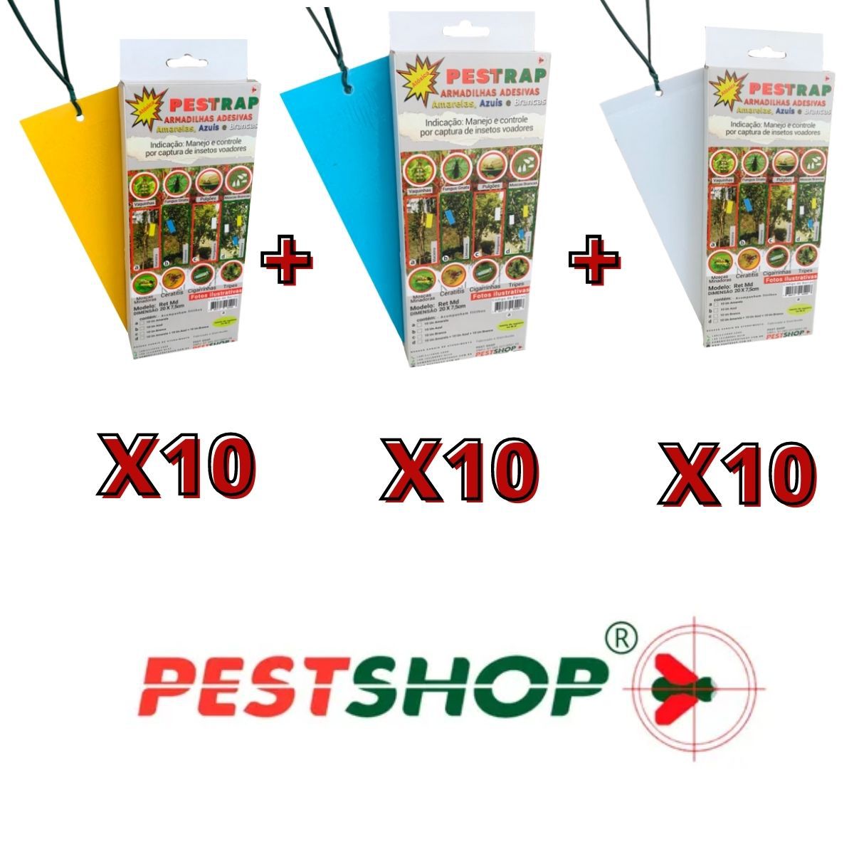 Pestrap 3 Cores Pega Inseto Voador Mod Ret Md 20x7,5 30 Un
